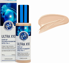 Enough Ultra X10 Cover up Collagen Foundation #13, 100ml - Тональная основа c коллагеном тон 13, светлый бежевый