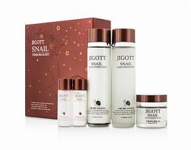 Jigott Snail Essence Moisture Skin Care 3Set - Набор для комплексного ухода за кожей лица на основе экстракта улитки