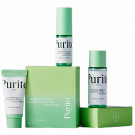 PURITO Wonder Releaf Centella Unscented Mini Kit, 57ml - Набор миниатюр средств с центеллой без масел
